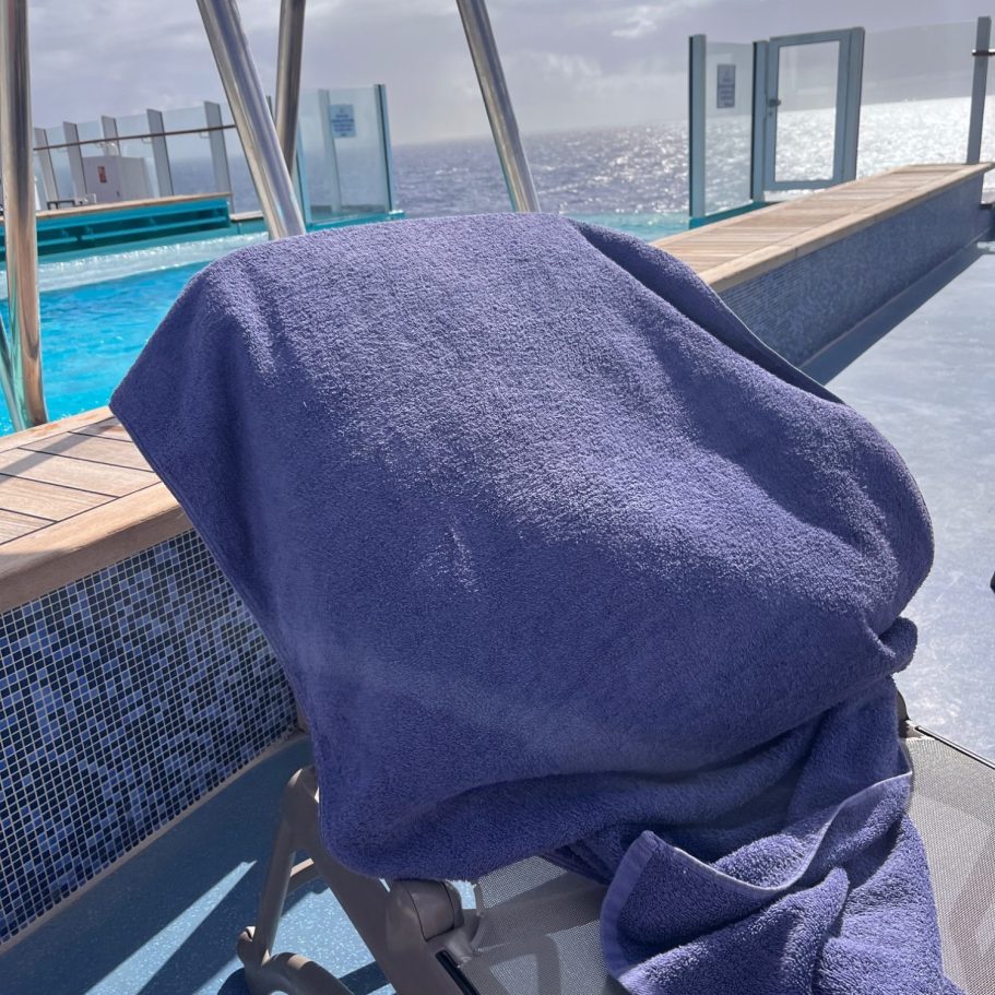 1. Place towel on sunbed or sun lounger
