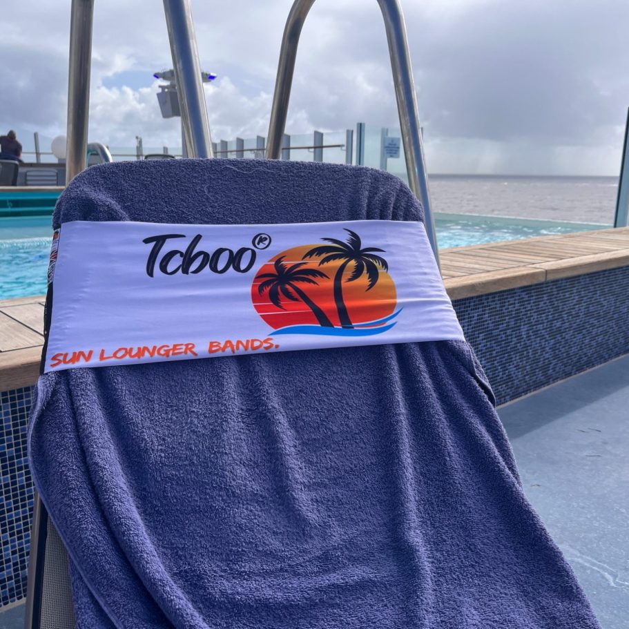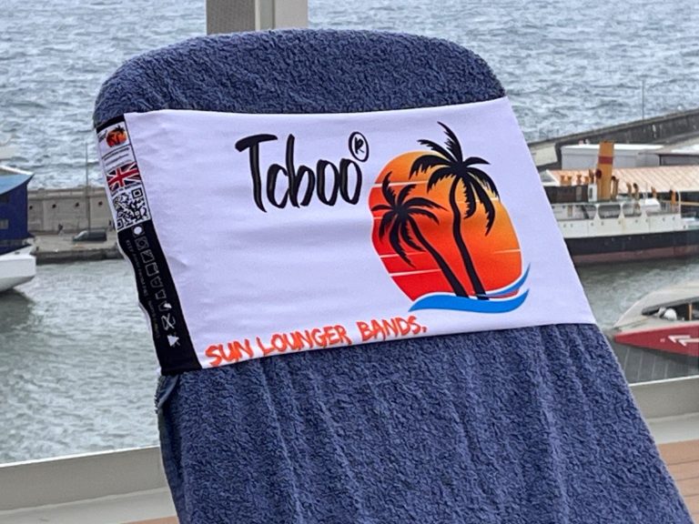 Reusable sun lounger towel bands, Designed and manufactured in the UK.